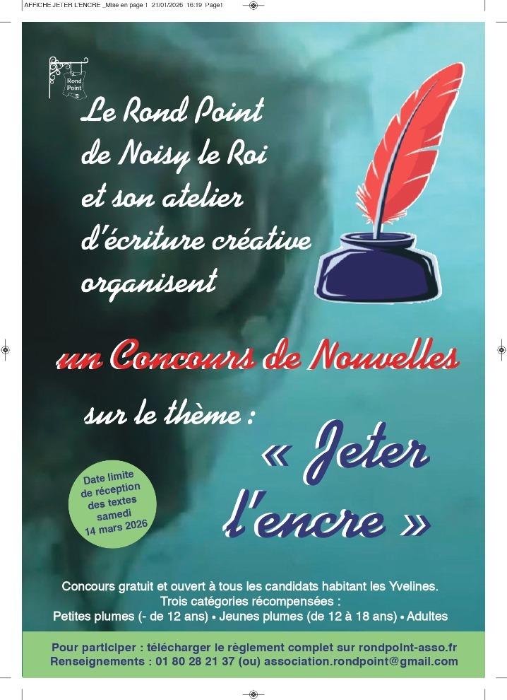 CONCOURS DE NOUVELLES SUR LE THEME "JETER L'ENCRE" Reglement Concours de Nouvelles 2026.pdf Publié le 31 janvier 2026