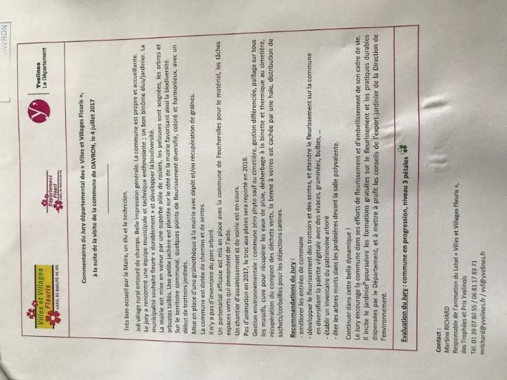 Davron vient d'être récompensé à nouveau cette année par le jury Villes et Villages Fleuris du Département des Yvelines et obtient 3 pétales dans la catégorie communes de moins de 1000 habitants.