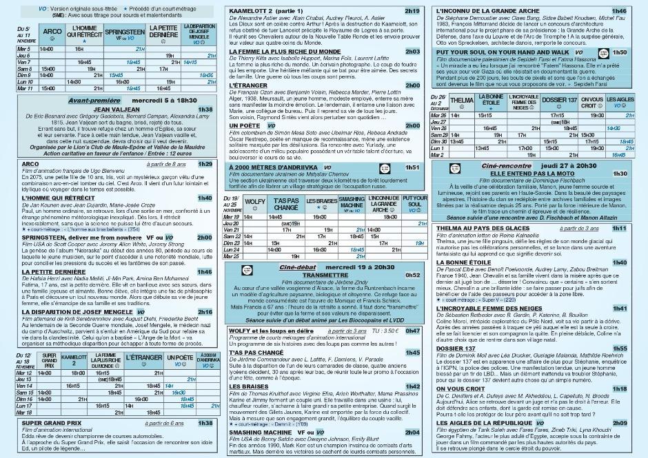 enfin le jeudi 27 à 20h30 la Communauté de Communes Gally Mauldre vous permettra de découvrir la très belle histoire d’une résidente de notre région. Manon, une jeune femme sourde et lumineuse dont le parcours projeté à l’écran (« Elle entend pas la moto ») vous touchera à coup sûr. Cette dernière accompagnée de la réalisatrice Dominique Fischbach viendra à votre rencontre après la projection.
